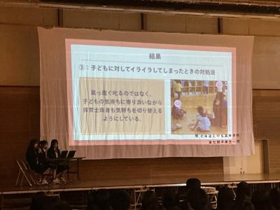 また、2年生はインターンシップの活動報告として、「水産の館」および「中央保育所」での取り組みについて発表しました。