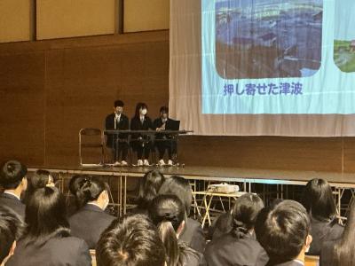 風の強い中、町長の大西正紀様をはじめ、教育長の川上松美様、えりも町議会議員の皆様、ならびに今回の探究活動において生徒たちを支えてくださった町民の皆様に、多くご臨席いただきましたことに、心より感謝申し上げます。