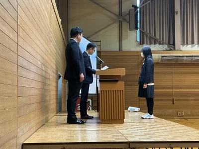 12月25日(木)に、表彰伝達式および冬季休業前の全校集会を行いました。