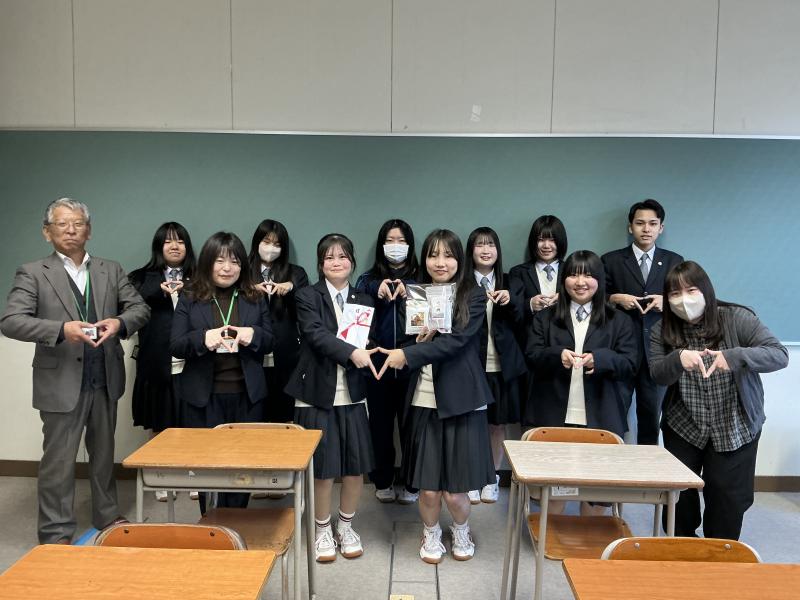 1月16日に贈呈式が行われ、目録をいただきました。今年も10月に開催される海と山の幸フェスティバルでの出店を予定しており、代表生徒が意気込みを述べました。