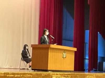 1月30日(金)にえりも中学校にて本校の3年生4名が町内の小・中学生に向けて進路講話を行いました。自身の進路活動を振り返り、苦労したことや、高校生のうちに取り組んでおくとよいことなどについて話しました。今回の講話が、小・中学生の皆さんにとって将来を考えるきっかけとなれば幸いです。